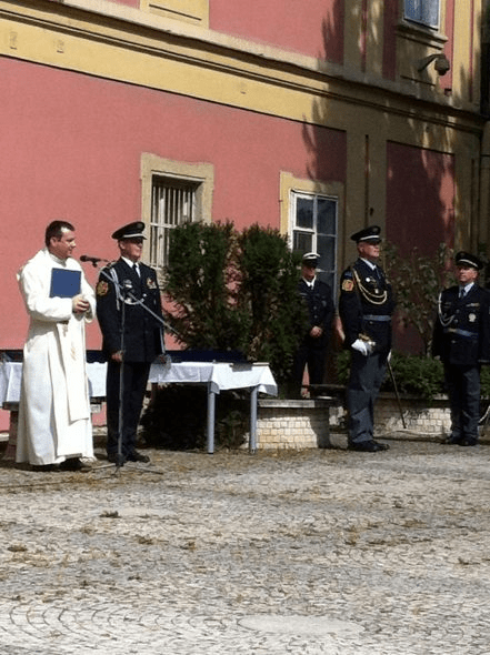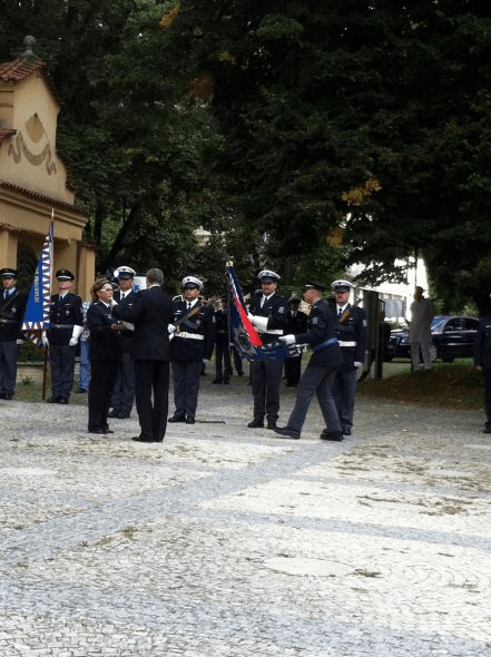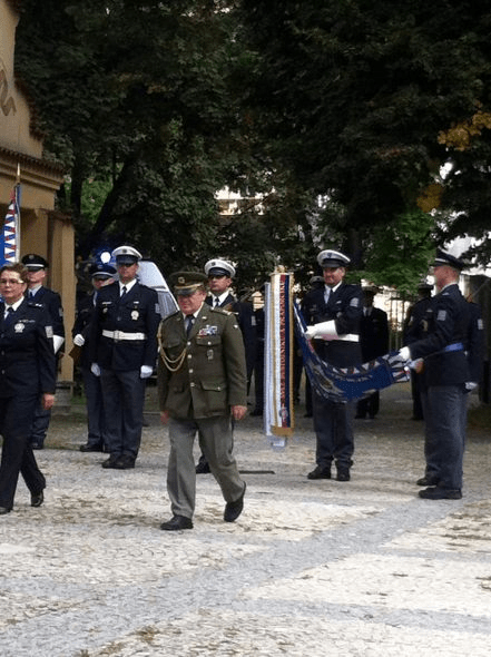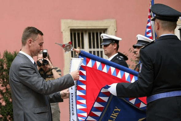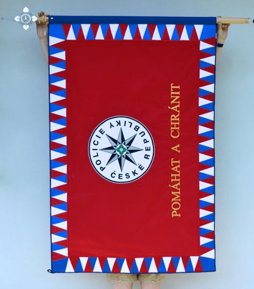 Embroidered police flag was made on the occasion of the 94th anniversary of the traffic police. Interior Minister Martin Pecina participation of the Chief of Police Martin Wormtail, Director of the Traffic Police Tomáš Lerch and other distinguished guests gave the ceremonial Traffic Police flag. The traditional ceremony at the premises of the Police Museum in Prague Charles was the blessing of new standards.