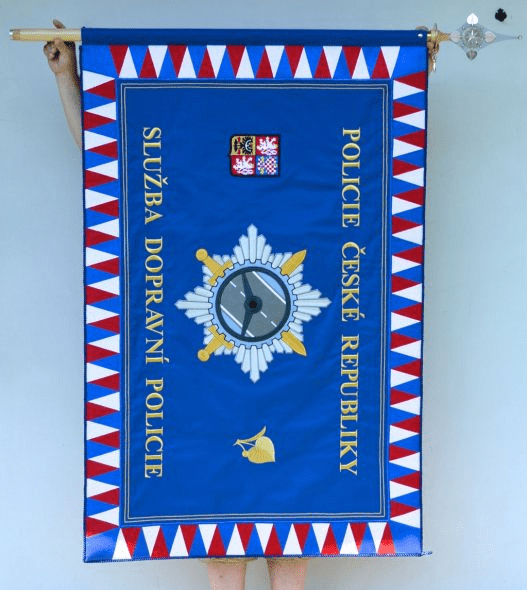 Embroidered ceremonial flag for Traffic Police of the Czech Republic