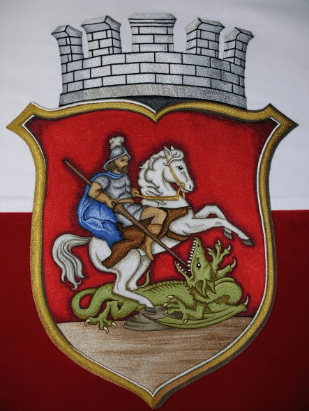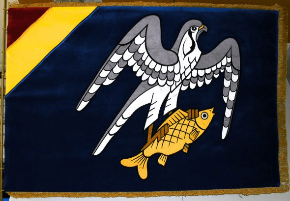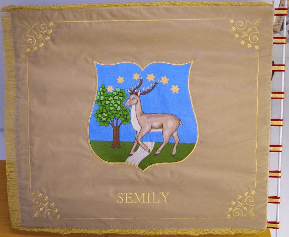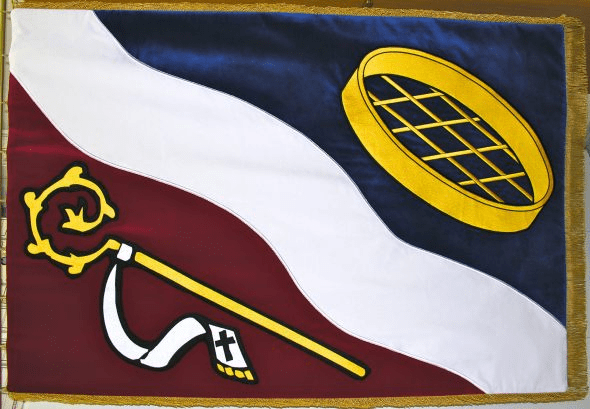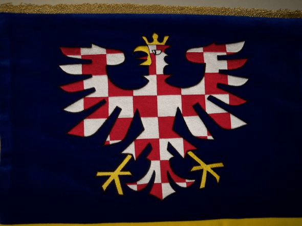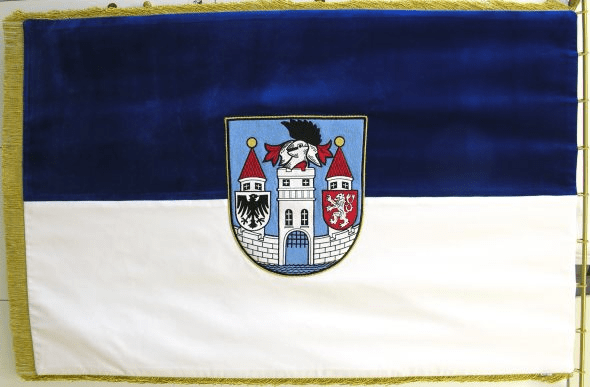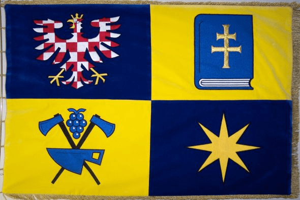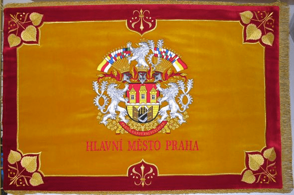 Městská vlajka pro Prahu 1 vyšívaná ze sametu