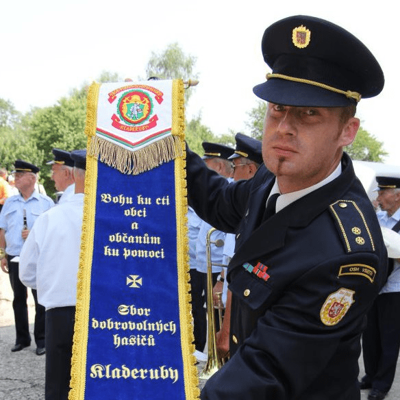 Vážení zástupci firmy Velebný & Fam, když jsme v roce 2001 u Vaši firmy nechali vyhotovit náš hasičský prapor, byli jsme názoru, že jsme pro reprezentaci našeho sboru udělali maximum. Opak byl pravdou, abychom reprezentovali náš sbor co nejdůstojněji došli jsme k závěru, že nám chybí spousta "drobností." Po návštěvě Vaši firmy jsme jednoznačně došli k závěru, že budeme vyšívat a nakupovat výhradně od Vás. Byli jsme velice mile překvapeni, jak jste dovedli vaši práci k umění. U Vás precizně vyšité rukavice s našimi znaky, ojedinělý hasičský ornát, nebo propracované slavnostní stuhy náš sbor zviditelňují na každé vlajkoslávě a pod. Spolupráce s Vámi nás těší o to víc že jste vstřícní i našim návrhům a námi zadané zakázky jsou dovedeny k dokonalosti. Na další spolupráci s Vámi se těší SDH a obec Kladeruby.