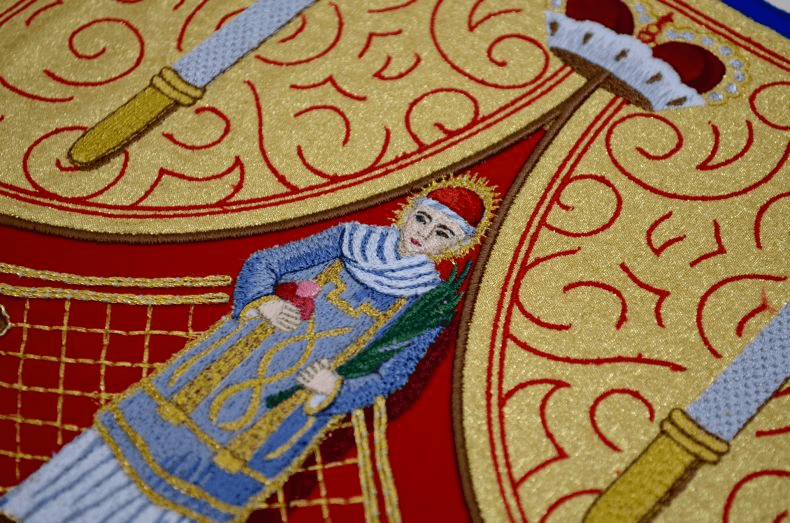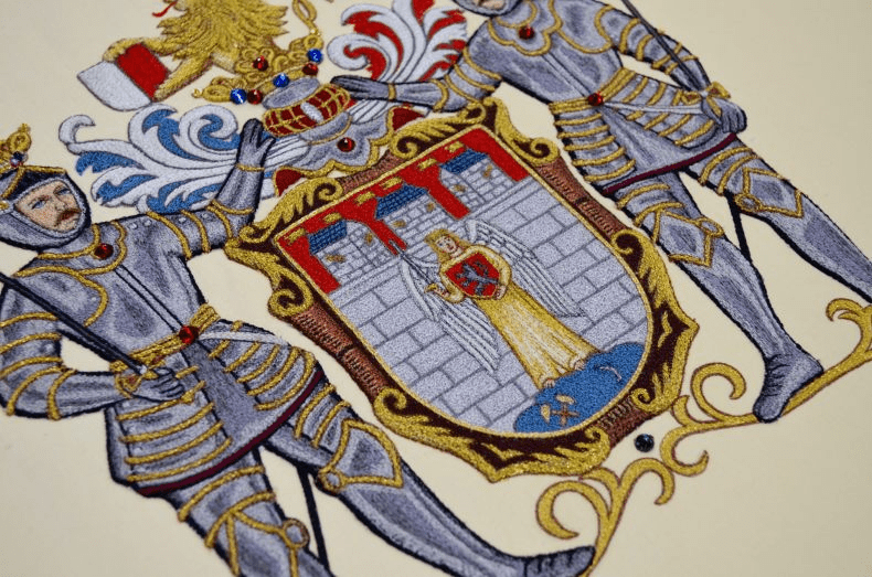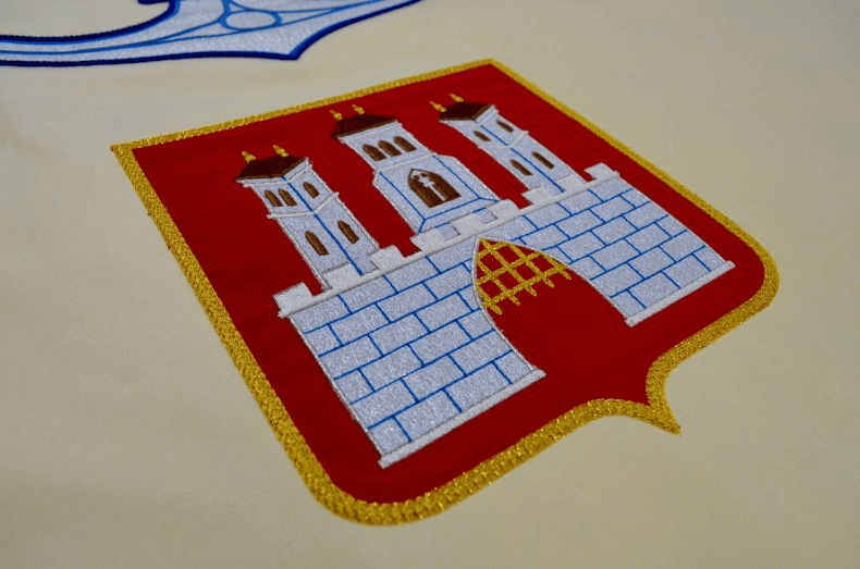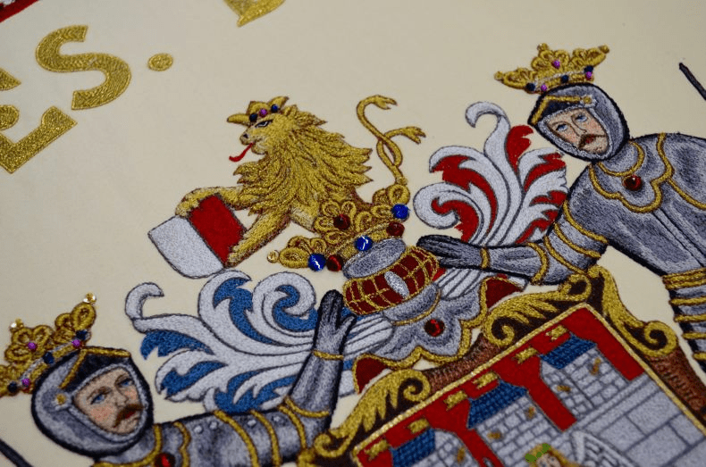 Všimněte si tohoto detailu motivu, jak je velmi fotorealisticky propracované stínování. Barevný přechod vzniká vrstvením několika odstínů nití. To je velmi důležitý podnět při výběru výrobce vaší budoucí vlajky.